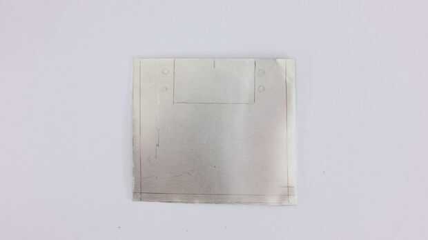 Por último tenemos que marcar y cortar la tercer placa de montaje. Esta placa se utilizará para sujetar el aparejo para el tornillo de la placa de montaje del trípode. El cuerpo del motor de barrido también se ser montaje en este plato. Por simplicidad, sólo será una placa plana con orificios de montaje en ambos lados.