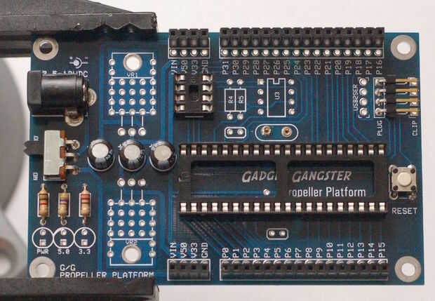 Breadboards pueden ser rápidos para probar un circuito simple, pero son muy torpes a la hora de utilizar ese circuito.Así paso al siguiente nivel de prototipos de circuitos con un escudo personalizado como este para la plataforma de hélice de gángste