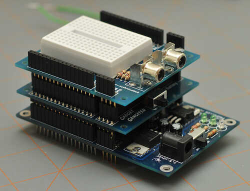 - Estándar. pin headers de 1" en una configuración de doble fila, así que módulos pueden ser apilados arriba y abajo o añadidos a una placa o Protoboard
