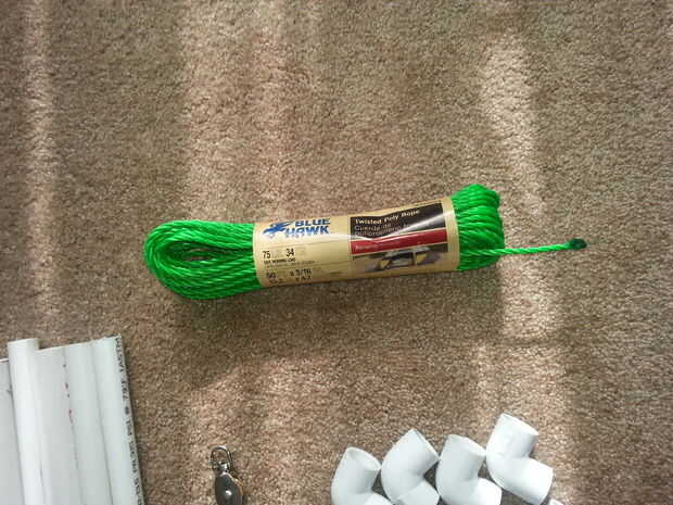 Ejecute el extremo abierto de la cuerda a través de dos poleas y atar a un extremo de su Asamblea de tubo.