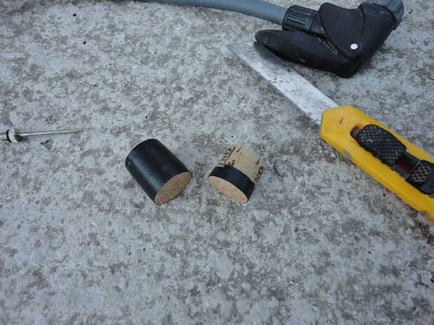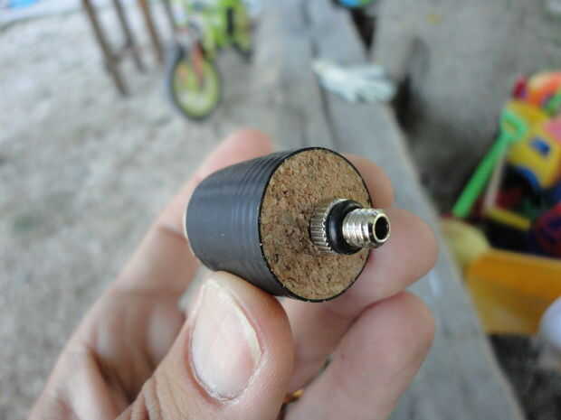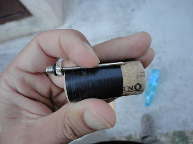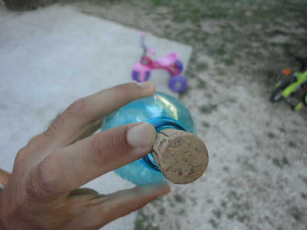 Debe asegurarse que el tapón cierre apenas el frasco, de lo contrario se debe colocar cinta alrededor de la circunferencia del corcho. El enchufe debe ser más largo que el corcho. Hacer un agujero en el corcho para el enchufe (hacer muy apretado).