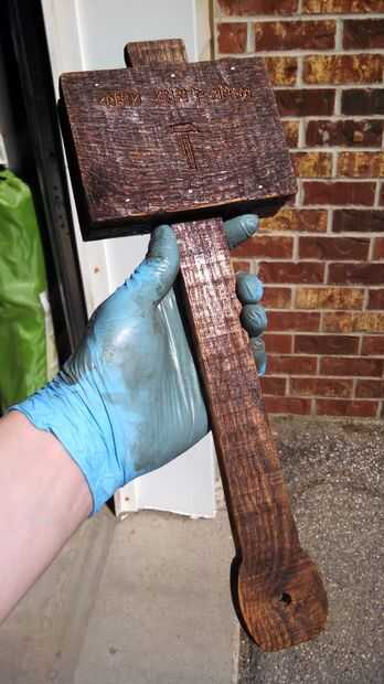Después de la capa seca completamente decidí hacer una manija con cordón para un mejor agarre, usando los otros instructable que vinculado para la inspiración! Así que mi paquete de cadena de carnicerías, remojo, luego tomando tiempo y envolviéndola completamente para estirar a 1/2 pulgada por encima y por debajo de donde se sienta mi mano. Azotes lo mas ajustado posible para constrict y ser apretado en el mango. Resultando ser una cómoda, sin embargo, mazo rugosa, madera a utilizar en mi pequeño taller.