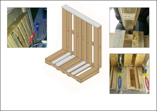 Quería hacer spots para Razor scooter los niños, así que simplemente pares de los listones que tenía corte antes y clavó con suficiente espacio para acomodar el marco debajo de cada scooter, con el juego un poco y la plataforma superior apoyado sobre los listones.