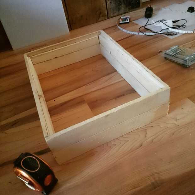 Aquí es donde entra juntos. Ahora en mi caso, la madera de la plataforma no era lo suficientemente amplia para comenzar con proporcionar la profundidad de la caja que necesitaba para asegurar la dispersión de la luz iba a ser óptimo, así que tuve que hacer y colocar otro marco básico a la existente.