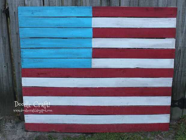 Esta bandera americana puede utilizarse para uso decorativo interior o exterior. Es muy sencillo de hacer!Para hacer esta bandera americana necesita:Una plataforma dePintura en aerosol rojoPintura en aerosol blanco semi brilloPintura de acrílico azul