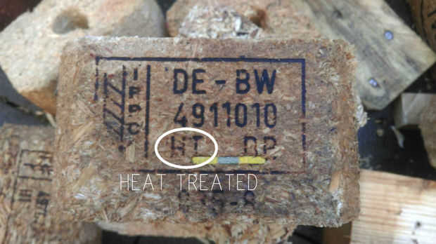 HT: Tratamiento térmico, esto es lo que usted debe buscar. Es un tratamiento donde la madera se calienta a la temperatura mínima de la específica para el tipo de madera. No es nocivas a su salud tan seguro de utilizar.