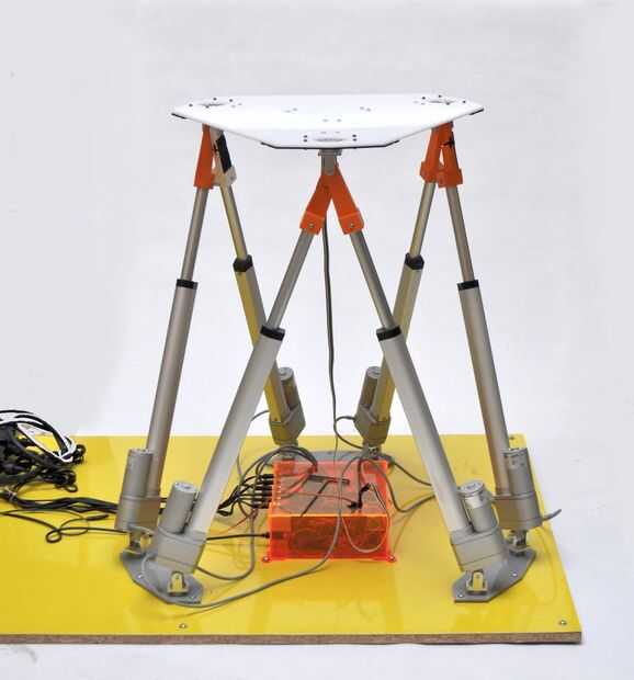 Lo que sigue es parte 1 de 2 para la construcción de un robot de 6 ejes hexpod inspirada en la obra de D. Stewart y puesto en ejecución para ser construido por las piezas del estante y controlado por Arduino. Este primer instructivo incluye los archivos de diseño para la creación rápida de prototipos (mediante corte láser e impresión 3D), una lista de enlaces material y hardware para el abastecimiento de partes y una introducción a la configuración electrónica para el control de PWM. Esta plataforma fue desarrollada para controlar con precisión cargas pesadas por lo tanto escoger actuadores lineales sobre un diseño de servo convertido. No localizar a una guía de instrucción para el diseño de este tipo en cualquier lugar en línea, espero este instructable proporciona un punto de partida para cualquier persona con necesidades similares de robóticas.