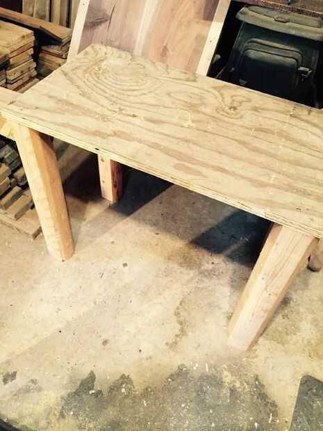 Cortó las piernas a en 19 y luego una pieza de 15 por 29 de contrachapado en la parte superior las piernas. El 19 en lo convierte en una buena altura para mi hijo, pero tuyo tenga que ser más alto o más corto. 15 por 29 era del tamaño de madera de desecho que tenía. Es un muy buen tamaño y es proporcional. Una vez hecha la base, es la parte posterior.