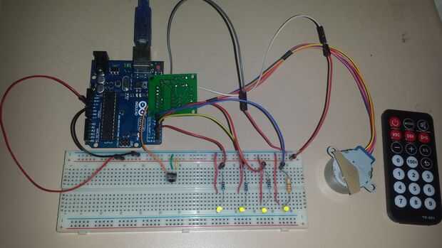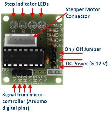 El motor paso a paso se conecta a la Junta de conducción, y pines de 5V y tierra de arduino están correctamente conectados a los pines de alimentación de la Junta de conducción. Como resultado, esto ayudará a la vuelta de motor en. La conducción Junta pins 1N1 - 1N4 están conectados con el arduino pins 8-11 con el fin de recibir la señal de la arduino.