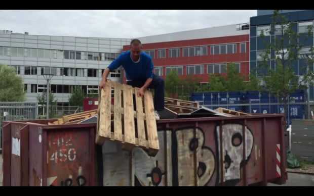 Necesita 4 palets, preferiblemente tan sólidas como sea posible. Cada vez que necesito paletas que siempre busco en contenedores cerca de mi taller, también puedes preguntar en una tienda (generalmente consiguen sus mercancías entregados paletizados). Personas son generalmente felices regalar sus plataformas, y a veces incluso puede encontrarlos en las calles.