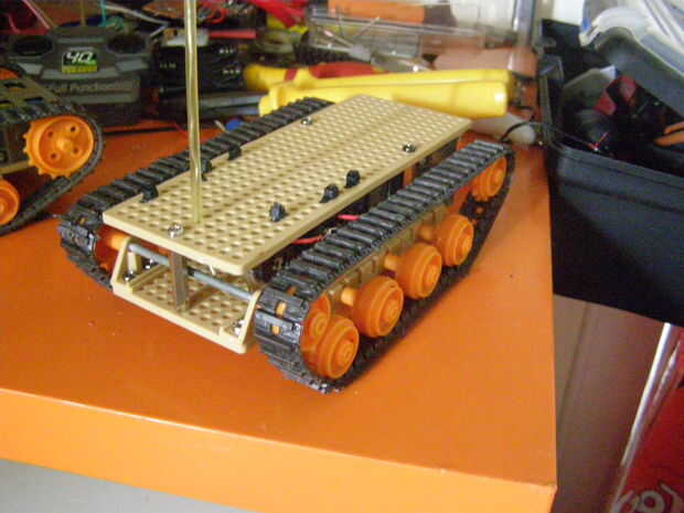 Tenía que poner un soporte porque la nueva Junta de control era más grande de lo que pensaba. Por lo que estas baterías son en el techo de la plataforma del tanque. La sección de la azotea todo bajar tornillo en esta posición.