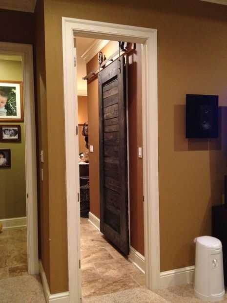 Pared colorida plataforma de madera y puertas corredizas de granero