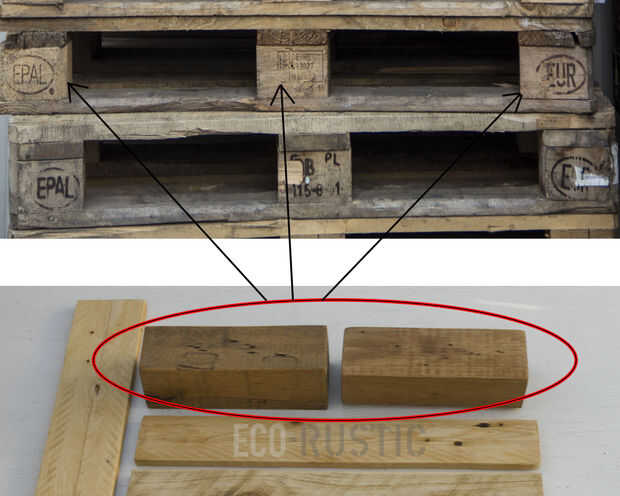 Los bloques de madera necesarios para este proyecto son fáciles de encontrar entre palets EUR, y los tamaños pueden variar de una plataforma a otra.