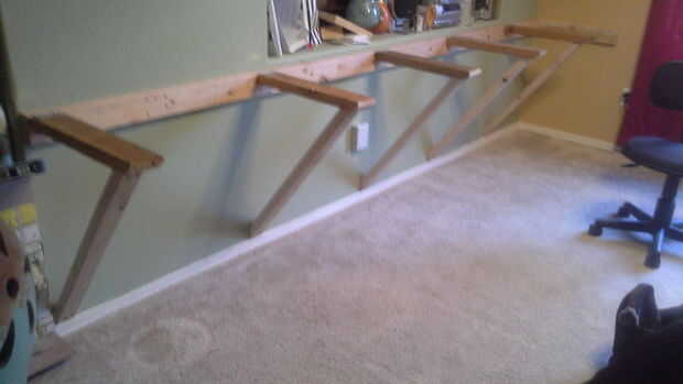 Usted puede hacer esto de todos modos desea, usando los soportes de Metal, ménsulas de madera, ect. o puedes hacer lo que tenía que hacer y hacer mi propio soporte ya que mi escritorio era tan profundo.