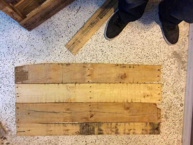 Organizar la madera de palet en el tamaño y la forma que quieres que tu imagen para ir a. En el ejemplo recomendado, utilicé cuatro pedazos de madera y dispuestos en forma de rectángulo. Si desea un aspecto más rústico, arreglar su madera en una forma más aleatoria. Si usted desea un más limpio corte de mirada, como la que aparece, averiguar la cantidad de filas de la madera que desea y vi fuera de los bordes.