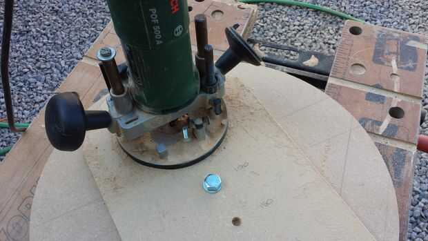 El primer obstáculo era hacer los discos para las plataformas. Yo quería mi peana redonda así que considero un juego pero yo quería un mejor acabado y también sabía que no sería correctamente ronda cuando terminé. Como ya tenía un router y 6 mm recta corte poco decidí utilizarlo pero necesitaba una manera de cortar círculos con un routerlo busqué en Google que y me di cuenta que necesitaba una plantilla. No tengo uno así que tuvo que hacerlo.
