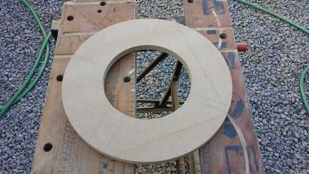 Sólo para información... Mi plantilla va hasta 500mm que significa que puedo cortar un círculo de 1mtr... que es una plataforma bastante grande pero apenas para ser seguro y como me estaba divirtiendo en un día soleado también hice una versión mucho más grande que llega hasta