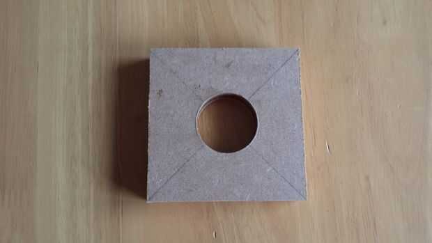 Justo al lado de los cortes de la hoja de MDF para la plataforma con un agujero perforaron en el medio para llevar el motor (imagen 2)
