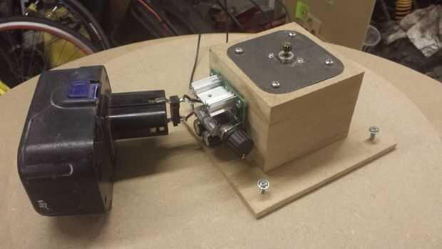 Al final corté 4 placas que luego pude conectar todo a una pequeña placa base junto con el regulador conectado al lado (imagen 3). En la parte superior del motor es alguna lata corte y atornillado a la parte superior del motor y luego el MDF. Todo es muy seguro y dudo que se va a mover mucho. Imagen 4 muestra que el montaje del motor acabado con variador y sin cuerda del taladro batería.