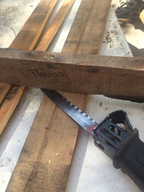 Usted encontrará varios Instructables que explican cómo desmantelar las plataformas para cosechar la madera. Cuando yo desmontar palets, prefiero utilizar una sierra de vaivén con una hoja extra gruesa demolición-grado diez o doce pulgadas. La hoja más larga es útil para trabajar entre los tableros y ofrece apalancamiento más que una hoja más corta. Separándolas con una barra de palanca paletas pueden ser complicado porque la madera es a menudo frágil y fácilmente puede astillarse.