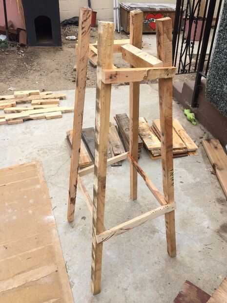 Después de formar las columnas, colocar tableros horizontales para formar la forma de pirámide. Puesto que hay solamente un tornillo en cada articulación, puede ajustarse el ángulo de los montantes.