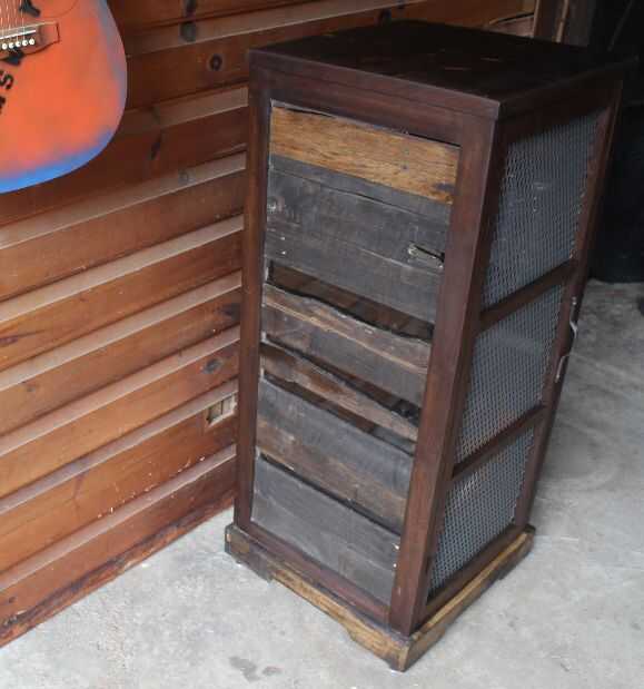 todo el marco del caso se realiza en madera de nogal, mientras que toda la madera interior del marco es de madera de la plataforma. la base está hecha de 2x4s también de palets. también utiliza vidrio y ampliado de acero de la puerta y las repisas son de cristal templado ajustables.