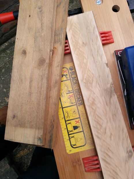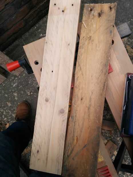 Los tablones de la cuatro mesa top-a-ser reducidos a poco más de 800 mm y prueba de ajuste. Empezó a buscar como no podría ser un completo desastre...