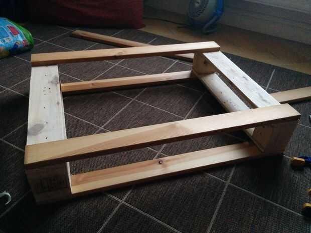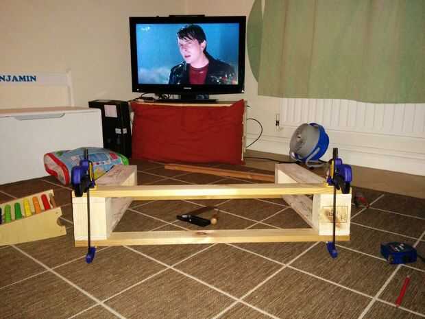 Entonces pegué cuatro de los listones de la cama de 800mm a estas secciones, creación de la longitud de la mesa y el caja/el marco básico de la parte superior. Las dimensiones básicas eran ahora en su lugar.