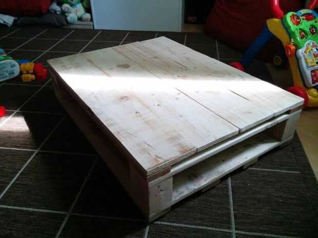 Después de limpiar y lijar la madera áspera de la plataforma dentro de una pulgada de su vida, cortar cuatro tablas a 600mm de longitud y pegado a los cuatro bloques de soporte (¿hay un nombre propio?) de los palets. Estos bloques se formarían las esquinas de la parte superior de la mesa con las tablas cruzando su ancho, así que esencialmente construí las secciones del extremo superior de la tabla.