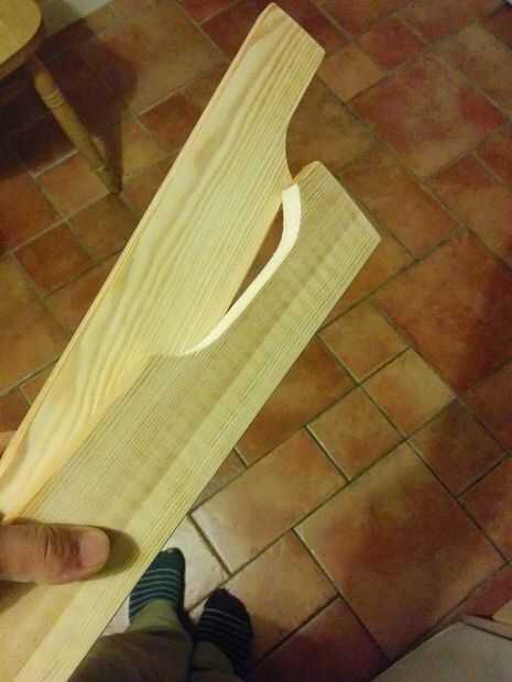 Quería que el gancho ya que cerca de la mitad de la barra de la rueda se traba en - fuerza en simetría, pensé - usé la sierra caladora para cortar una sección curvada de la parte inferior de la palanca y la mitad de la parte superior (que va en forma el pie del pedal) profundo lo suficiente para permitir que el gancho permanezca ras. Esto también significó que podía tener la palanca más corta muy cercano al más largo sin interferir con el movimiento del gancho.