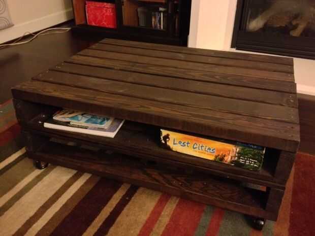 Se nos tiñe de ambas plataformas. Hemos utilizado manchas Minwax en nogal oscuro y salió muy bien. También se podría aplicar un sellador para largo plazo protección y la seguridad alimentaria. Decidimos omitir este paso y nuestra mesa de centro todavía se ve muy muchos meses más tarde.