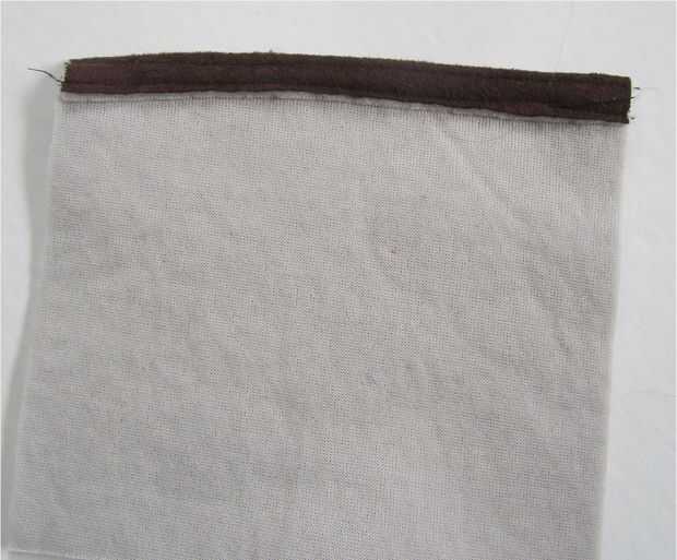 Dobladillar el borde superior de ambas piezas. Para la pieza que será el frente, parte superior coser dos veces para mantener el dobladillo acostado.