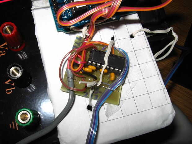 Actualmente estoy usando un protoboard para conectar todo. Finalmente voy a obtener una mejor tabla de prototipos y soldadura en algunas conexiones más permanentes pero por ahora la placa hace que sea fácil cambiar las cosas. Mi placa es "Básico protoboard" de SparkFun, sólo un protoboard en una placa de metal con 3 terminales.