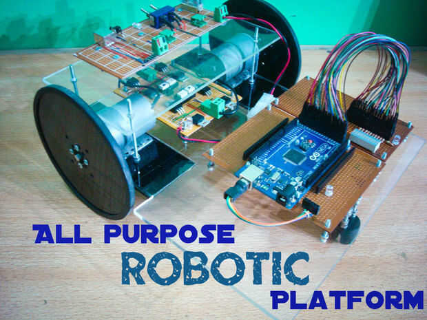 esto es, como dice el titulo, una plataforma robótica basada en Arduino, con su propia biblioteca. El modelo "estándar" viene con dos motores traseros, dos ruedas de omni en la parte delantera, y un sensor de distancia montado en la parte delant