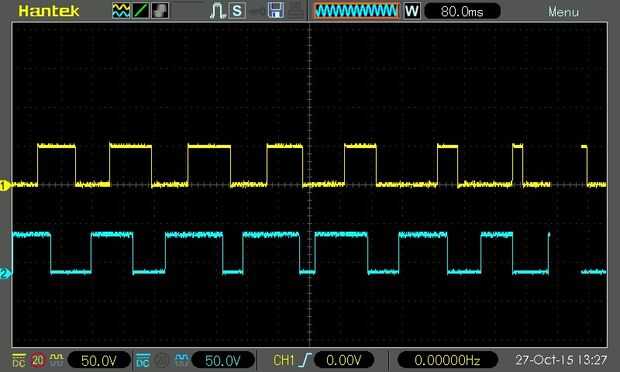 Después de conectar los motores y codificadores, probé con mi osciloscopio, y parece que funciona tal como lo publicitan. Sin embargo, software habla allí es un error leve y que tipo de petardeo de vez en cuando.