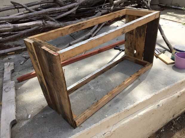 Al crear las dos piezas de la estructura interna, las partes delanteras y traseros deben ser las piezas largas. Así, los tableros del lado externo serán clavados o atornillados al marco lateral y marco frontal, que debe aumentar la fuerza.