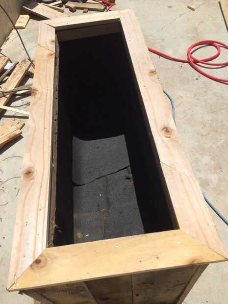 Como indican las fotos, envolvió el interior de la caja de la maceta con papel alquitranado. Lo hice para esta caja porque no planeo plantar verduras en el cuadro porque papel alquitranado puede sanguijuela productos químicos en el suelo. Cuando hago cajas que plantas comestibles, los línea con 6 plástico mil. No importa el forro, medirlo por lo que cubre los lados y luego se superpone en la parte inferior. Exceso de agua debe tener una ruta de salida y el trazador de líneas debe evitar suciedad salga de los lados.