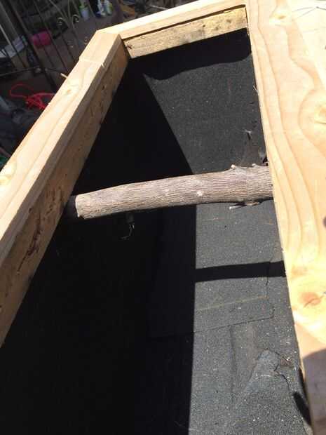 Si el cuadro de jardinera es más de 30 pulgadas de largo, es una buena idea para colocar una pieza de marco adicional a la mitad de la caja. En la última foto, he añadido una rama de árbol que asegura que la caja no se doblará hacia fuera y proporciona un asa de transporte fácil.