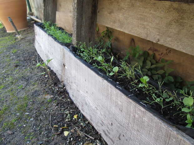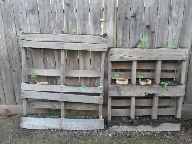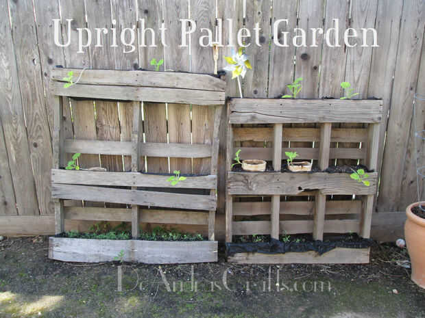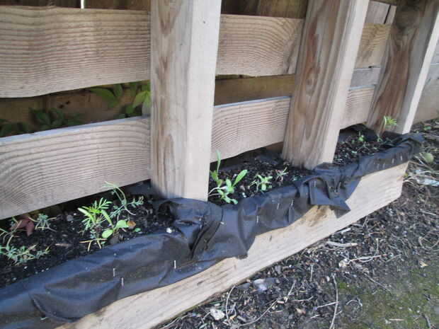 Estos jardines de plataforma están apoyado contra la valla en mi pequeño jardín urbano. Utilizo el interior espacio entre la tela jardinería 2 x 4 y grapa a la madera para crear una jardinera casi oculto, de aspecto rústico a mi espacio exterior.