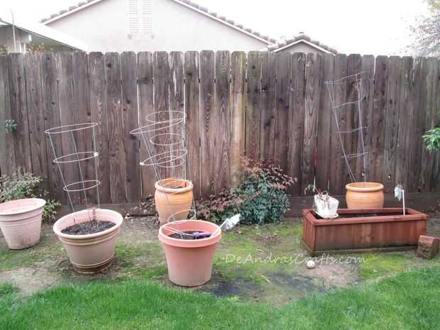 Mis macetas incluyen una zona preexistente donde he plantado tomates en años anteriores, se muestra en dos fotos. Tenemos un árbol enano melocotón y ponemos en una cama elevada del jardín donde cultivamos fresas, zanahorias y calabazas. Trata de sandías este año en una jardinera elevada y tienen un arbusto de zarzamora que comemos las moras apagado tan pronto como pueden ser cosechados.