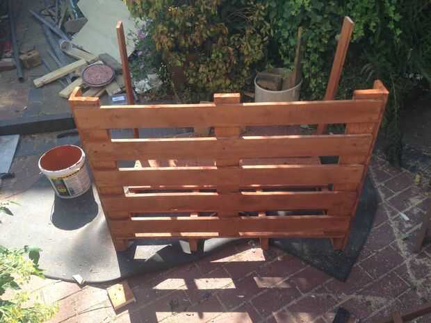 Entonces yo cortar y los soportes de 4 esquina para el almacén de madera de colores, estos fueron luego conectados a la base. Realmente encontré que si había teñido la madera de palet y entonces no bien deje que se seque, había menos partir al poner los tornillos a través de. De ahora en adelante todo había manchado antes de enroscar. La parte trasera entonces fue unida, otra vez con los tornillos.