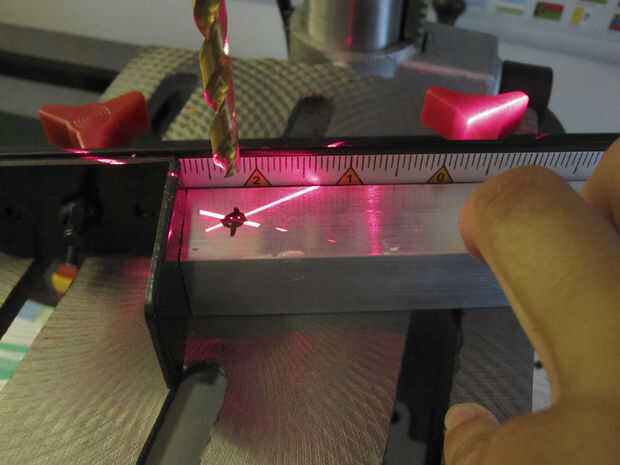 C: usted tendrá un agujero para la ubicación de montaje de cámara. el tornillo es de 1/4-20, y necesita perforar a través de todo el camino. Una vez más, asegúrese de que los agujeros están en los mismos lados como agujeros de todos de los subprocesos.