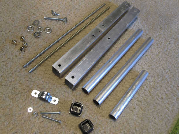 c. colocar el tubo cuadrado y todos roscan. El hilo de todos se pasan por el tubo cuadrado y tiene una arandela y una tuerca ciega en el otro extremo. El tubo redondo incluya el hilo todos, entre los tubos cuadrados. Verificar la longitud de la ronda los tubos te necesita (9 3/8")