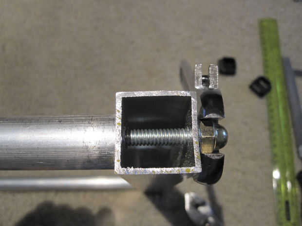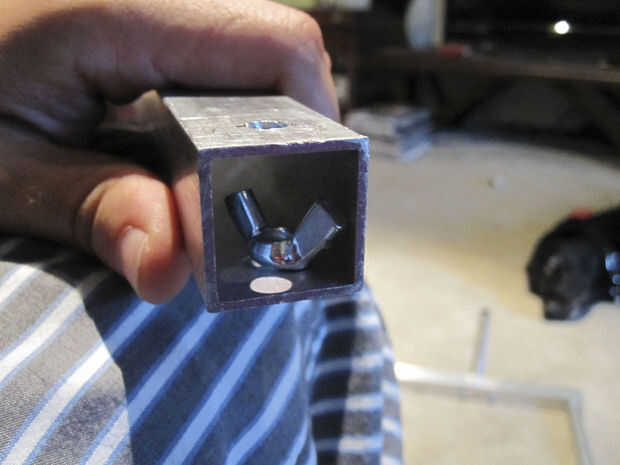 a. hilo de rosca y el perno hasta el hilo de todos. Una arandela y una tuerca en cada extremo por favor. Mirador para apretar demasiado, empiezas a aplastar el tubo cuadrado.