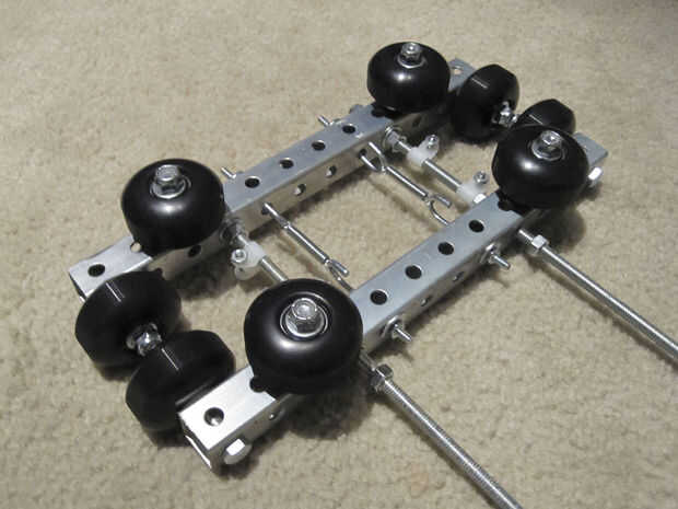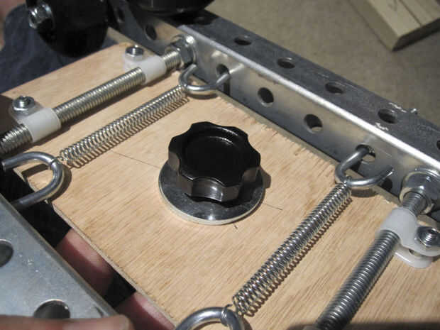 ** Según el perno/tuerca utilizas, y el espesor de la placa base, puede que necesite hacer alteraciones. No quiere demasiado screwpost que sobresale de su cámara o trípode puede aceptar. Apriete excesivo podría arruinar el equipo. Simplemente puede Agregar arandelas para tomar parte de la longitud extra, pero necesita para ser tan discreto como sea posible, en caso de que desee voltear el conjunto de tornillo de mariposa para uso el carro sobre una superficie plana (el lado ruedas hacia arriba, desvinculado de cualquier cosa).