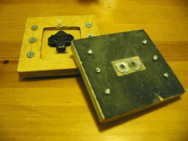 Primero taladré agujeros que eran ligeramente más pequeños que el núcleo del tornillo, abierto los agujeros con avellanado poco y atornillar los tornillos. Utilice tornillos para madera derecha en madera contrachapada puede hacer que la madera contrachapada crack, siempre perfore agujeros primero. Entonces aplanó los extremos puntiagudos de los tornillos para que no perfore mis zapatos. Lo hice con una sierra pero si tiene tornillos más cortos una lima de metal podría ser una mejor herramienta.