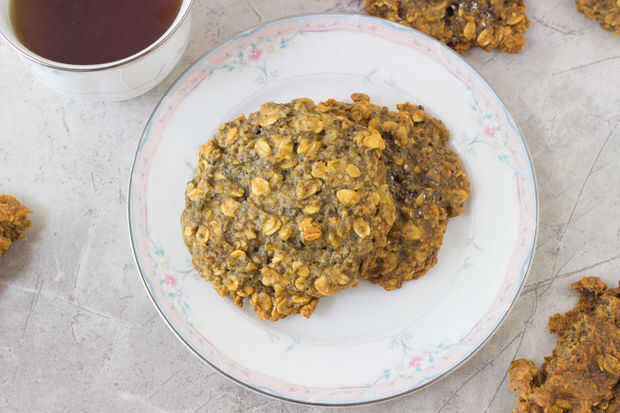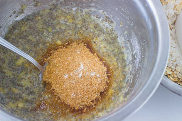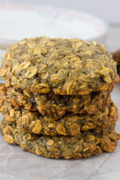 Las indicaciones de la receta: Precalentar el horno a 350 grados, línea una placa para horno con papel sulfurizado y reservar. En un tazón grande mezcla chia semillas y salsa de manzana, permiten la mezcla. Mientras mezcla es combinar avena, harina, bicarbonato y sal en medio del tazón de fuente. A la mezcla de chía añadir azúcar de coco, extracto de vainilla y plátano; Agregue la mezcla seca a un tazón grande hasta que se combinan todos los ingredientes. Coloque una cucharada colmada de masa para galletas en papel pergamino, use una cuchara para crear su forma de cookie. Coloque las galletas en el horno durante 15 - 25 minutos o hasta que las galletas estén firmes al tacto. Dejar enfriar y guardar en envase apretado del aire.