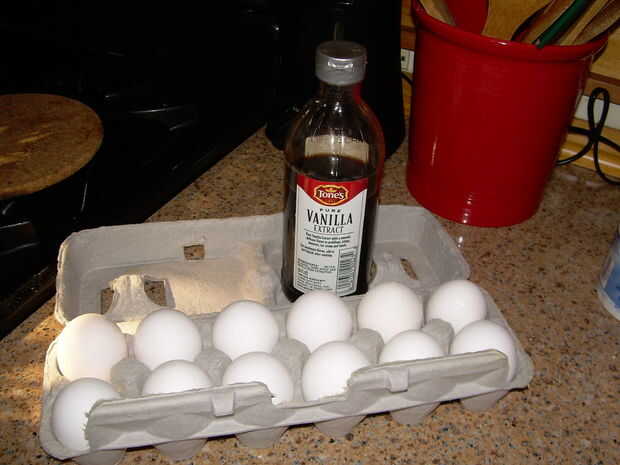 En un gran vaso o taza de metal, batir las claras de huevo, el cremor tártaro y la sal hasta que la mezcla esté espumosa. Mezcla de vainilla, poco a poco añadimos las 6 cucharadas de azúcar, batiendo constantemente hasta que el merengue forme picos suaves. Poco a poco Vierta en la mezcla de la maicena, batiendo hasta que esté espesa.