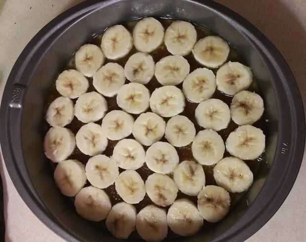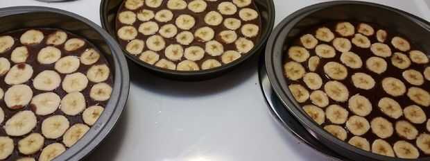 Distribuir el resto de la mezcla de pastel en sus ollas. Viértala suavemente en, o se desplazará sus plátanos todo alrededor.