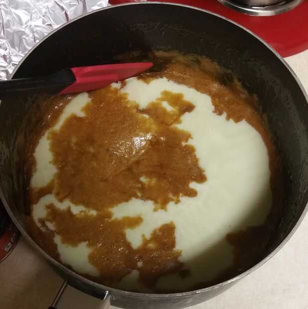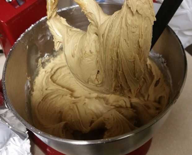 Una vez que el caramelo se haya enfriado, debe ser bastante duro y la mantequilla debe ser solidificada. Si está todavía blanda o líquida, debe enfriar ya. Si el caramelo no es completamente fría, la escarcha no establecerá.